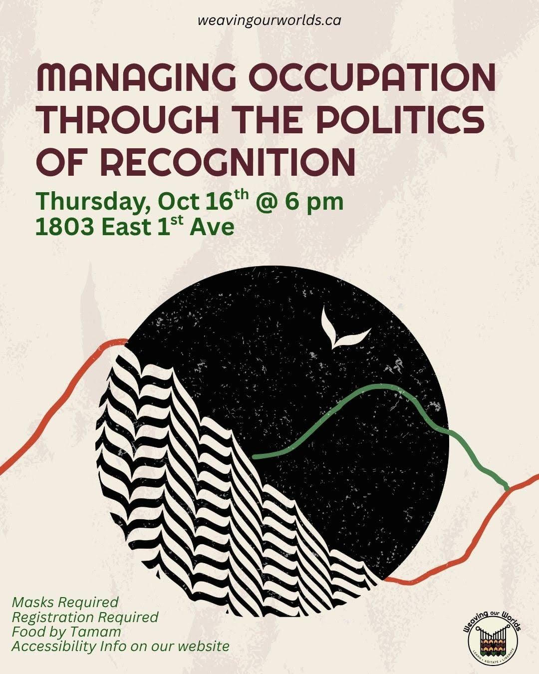 Join us for an educational event examining the history of colonial recognition as part of imperial domination from Turtle Island to Palestine. Canada, UK, Australia and France are making statements at the UN recognizing some form of a Palestinian state, while the Zionist entity is escalating genocide in Gaza and still seizing land and expanding illegal settlements in the West Bank under a gutted and collaborationist Palestinian Authority. Palestinian refugees remain displaced and refused the right to return to their homeland, and Palestinians within 1948 borders live under the rule of a racist Jewish-supremacist entity. We will hear from speakers how these recent announcements about recognition fit within a broader strategy of managing the occupation of Palestine, the imperialist history of the so-called two state illusion, and how Indigenous peoples in so-called Canada confront parallel settler-colonial dynamics of land theft, partition, and apartheid.