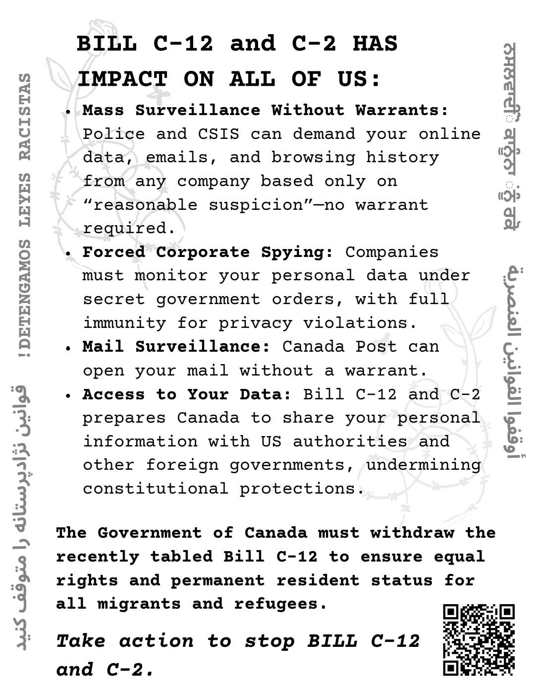 We must resist and stand with migrants and refugees! A simple action you can take is download and distribute this flyer about C-12 widely.